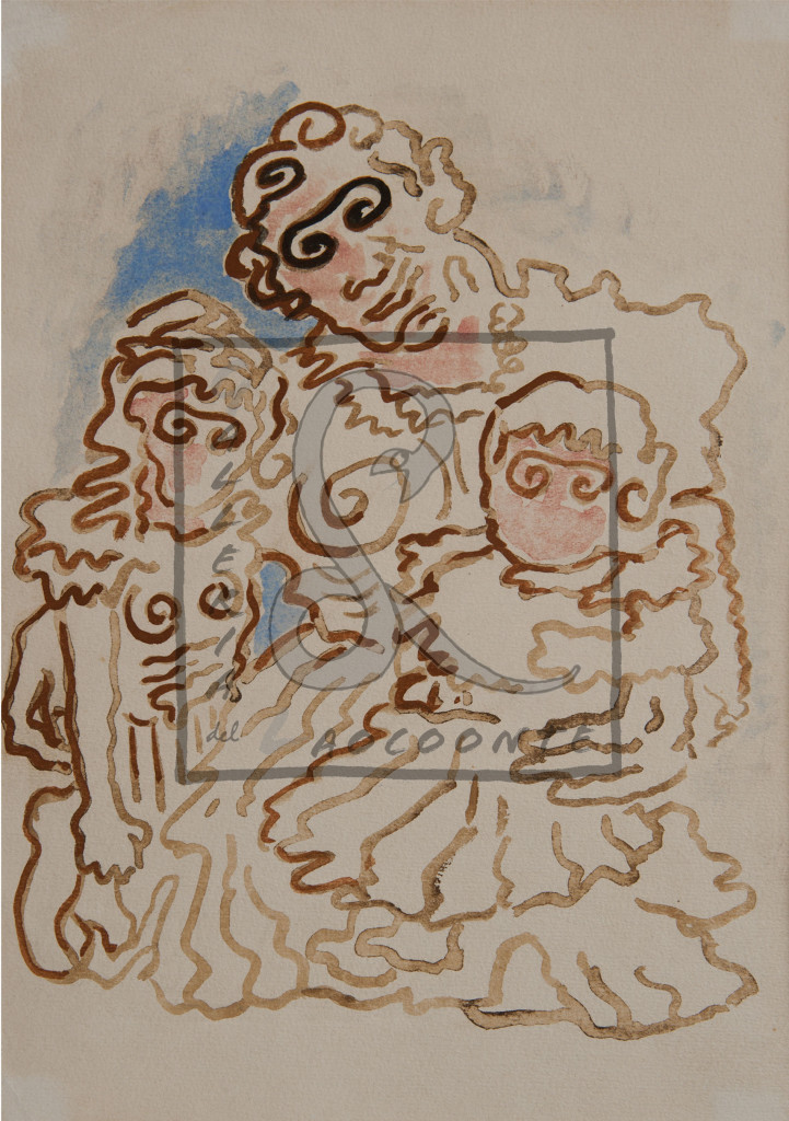 Klimt’s ‘Golden Phase’ was marked by positive critical reaction and success. Many of his paintings from this period used gold leaf; the prominent use of gold can first be traced back to Pallas Athene, (1898) and Judith I (1901), although the works most popularly associated with this period are Portrait of Adele Bloch-Bauer I (1907) and The Kiss (1907-1908). Klimt travelled little but trips to Venice and Ravenna, both famous for their beautiful mosaics, most likely inspired his gold technique and his Byzantine imagery. In 1904, he collaborated with other artists on the lavish Palais Stoclet, the home of a wealthy Belgian industrialist, which was one of the grandest monuments of the Art Nouveau age. Klimt’s contributions to the dining room, including both Fulfillment and Expectation, were some of his finest decorative work, and as he publicly stated, “probably the ultimate stage of my development of ornament.” Between 1907 and 1909, Klimt painted five canvases of society women wrapped in fur. His apparent love of costume is expressed in the many photographs of Flöge modelling clothing he designed.